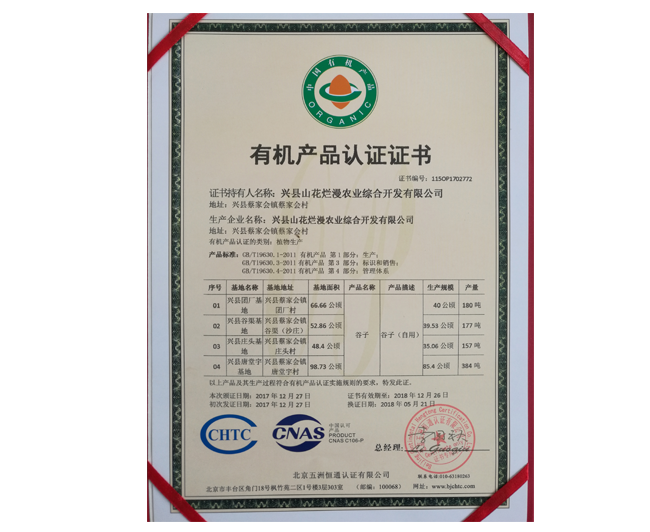 • 有機產(chǎn)品認(rèn)證證書